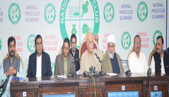 اسلام آباد(سب نیوز)تحریکِ تحفظِ آئینِ پاکستان کے عہدیداران کا اعلان کر دیا گیا،تحریکِ تحفظِ آئینِ پاکستان کے چیئرمین محمود اچکزئی، علامہ راجہ ناصر عباس، مصطفی نواز کھوکھر اور اختر مینگل وائس چیئرمین اسد قیصر سیکریٹری جنرل، صاحبزادہ حامد رضا سیکریٹری اطلاعات، اخونزادہ حسین یوسف زئی ترجمان ہوں گے،یہ تحریک آئین کی بالادستی، عدلیہ و جمہوریت کے تحفظ کی جدوجہد کرے گی،اس بات کا اعلان محمود خان اچکزئی ،سلمان اکرم راجہ،علامہ راجہ ناصر عباس جعفری،مصطفی نواز کھوکھر و دیگر نے نیشنل پریس کلب اسلام آباد میں پریس کانفرنس کرتیہوئے کیا،محمود خان اچکزئی کا کہنا تھا کہ آج ایک عام انسان ایک وقت کی روٹی کے لیے ترس رہا ہے,47 فیصد لوگ غربت کی لکیر سے نیچے چلے گئے ہیں،تاجر اور کسان رل گئے ہیںعدلیہ کو مفلوج کردیا گیا ہے