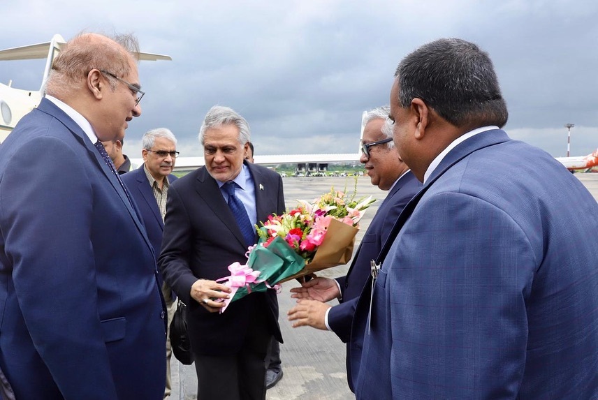 ڈھاکا ایئرپورٹ پر اسحاق ڈار کا استقبال بنگلادیشی سفیر، سیکرٹری خارجہ، بنگلادیش میں پاکستانی ہائی کمشنر عمران حیدر اور دیگر سینئر حکام نے کیا۔