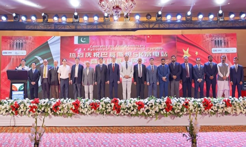 اسلام آباد :پاک چین اقتصادی راہداری ( سی پیک )کے تحت چلنے والے فلیگ شپ پراجیکٹ ایس کے ہائیڈرو پاور اسٹیشن کے کمرشل آپریشن کا ایک سال مکمل ہوگیا ہے ، اس سلسلے میں ایک تقریب کا انعقاد کیا گیا ۔چائنا انجینئرنگ کارپوریشن ( سی ای ای سی ) ، جس کا نام گلوبل 500کمپنیوں میں آتا ہے ، نے اس پراجیکٹ پر سرمایہ لگایا ، تیار کیا اورآپریٹ کیا ۔اس تقریب میں وفاقی وزیر برائے منصوبہ بندی اور خصوصی اقدامات پروفیسر احسن اقبال،پاکستان میں قائم چین کے سفارت خانے میں تعینات چارج ڈی افئیر مسٹریوآن کیانگ،پرائیویٹ پاور اینڈ انفراسٹرکچر بورڈ کے مینجنگ ڈائریکتر شاہ جہان مرزا شریک تھے ۔