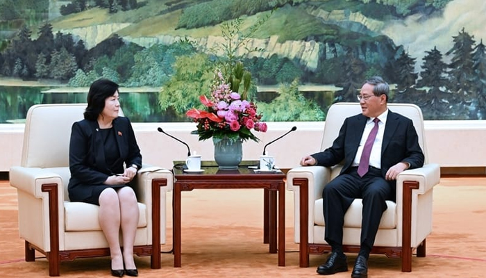 بیجنگ:چینی وزیرِ اعظم لی چھیانگ سے شمالی کوریا کی وزیرِ خارجہ سوی سان ہی نے بیجنگ میں ملاقات کی۔ لی چھیانگ نے کہا کہ چین شمالی کوریا کے ساتھ تمام سطحوں پر تبادلے اور باہمی رابطے کو گہرا کرنے، باہمی افہام و تفہیم اور دوستی کو مضبوط بنانے، تمام شعبوں میں عملی تعاون کرنے اور مشترکہ ترقی کے لیے مل کر کام کرنے کا خواہاں ہے۔
