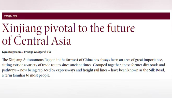 بیجنگ :آسٹریلوی میگزین ایشیا پیسیفک ڈیفنس رپورٹر کے ایڈیٹر کیم برگمین نے حالیہ دنوں چینی حکومت کی دعوت پر چین کے سنکیانگ ویغور خوداختیار علاقے کا دورہ کیا جس کے بعد انہوں نے میگزین میں ایک مضمون شائع کیا اور نشاندہی کی کہ سنکیانگ بیلٹ اینڈ روڈ کی تعمیر میں انتہائی اہم جغرافیائی کردار ادا کر رہا ہے اور سنکیانگ میں عوام کے معیار زندگی کو بہتر بنانے کی بھرپور کوششیں کی جا رہی ہیں۔