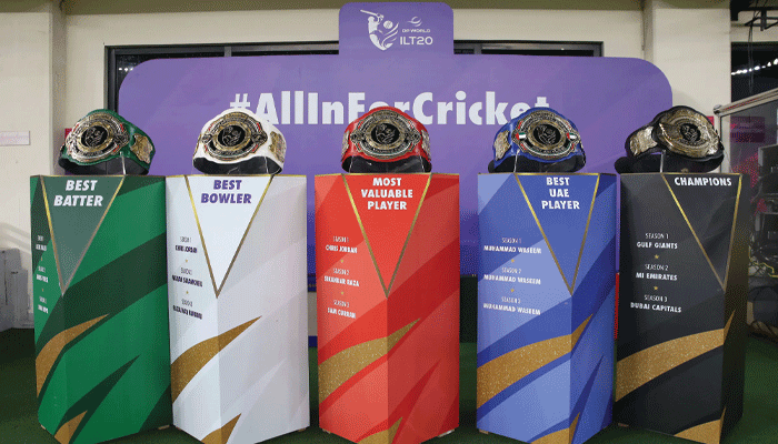 جس سے ہر میچ کی شدت مزید بڑھ گئی ہے۔ ایونٹ کے ابتدائی مراحل میں ہی شائقین سنسنی خیز مقابلوں سے لطف اندوز ہو رہے ہیں، جن میں لیگ کی تاریخ کا پہلا سپر اوور بھی شامل ہے۔گلف جائنٹس کے اوپنر پاتھم نسانکا تین اننگز میں 204 رنز اور مسلسل تین نصف سنچریوں کی بدولت سبز بیلٹ پر مضبوطی سے براجمان ہیں۔ وہ 281 پوائنٹس کے ساتھ سرخ بیلٹ کی دوڑ میں بھی سب سے آگے ہیں، جو ٹورنامنٹ میں ان کی شاندار فارم کا ثبوت ہے۔افغانستان کے عظمت اللہ عمرزئی تین میچوں میں 9 وکٹوں کے ساتھ سفید بیلٹ کی دوڑ میں سرفہرست ہیں، جبکہ ڈیزرٹ وائپرز کے خُزیمہ تنویر 154 پوائنٹس (50 رنز اور 6 وکٹیں) کے ساتھ نیلی بیلٹ کی قیادت کر رہے ہیں۔گزشتہ تین سیزنز میں یہ بیلٹس لیگ کی پہچان بن چکے ہیں جو ہر ایڈیشن کے بہترین کھلاڑیوں کو اعزاز اور 15 ہزار امریکی ڈالر انعام کے ساتھ نوازتے ہیں۔ اس کے علاوہ ٹورنامنٹ کے چیمپئن (بلیک بیلٹ) کے لیے 7 لاکھ امریکی ڈالر اور رنرز اپ کے لیے 3 لاکھ امریکی ڈالر مختص ہیں۔گزشتہ سیزن میں سیم کرن نے 387 رنز اور 7 وکٹوں کی بدولت سرخ بیلٹ اپنے نام کی، جبکہ شائی ہوپ نے 527 رنز کے ساتھ سبز بیلٹ جیتی۔ ایم آئی ایمریٹس کے فضل الحق فاروقی 21 وکٹوں کے ساتھ سفید بیلٹ کے فاتح ٹھہرے، اور محمد وسیم 183 رنز، 13 چھکوں اور 6 کیچز کی بنیاد پر نیلی بیلٹ کے حق دار بنے۔