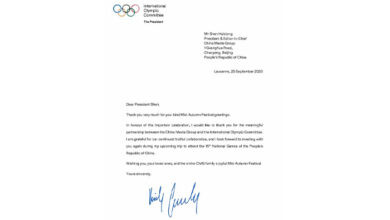 بین الاقوامی اولمپک کمیٹی کی صدر کی جانب سے سی ایم جی کے تمام ملازمین کو وسط خزاں تہوار کی مبارکباد