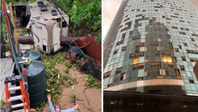 امریکہ کے شہر ہیوسٹن میں طوفان سے شہر کے مرکز میں عمارتوں کو شدید نقصان