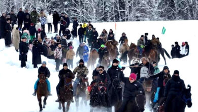 سنکیانگ کے گاوں حہ مو میں لو گ برف باری میں جشن بہا ر منا رہے ہیں