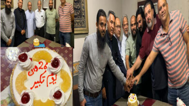 جدہ میں یوم تکبیر کی تقریب: صحافی برادری کا کیک کاٹنے کا اہتمام