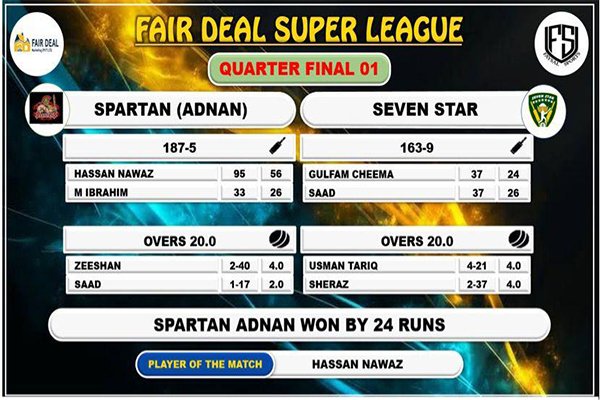 سپارٹن فیئر ڈیل سپر لیگ کے سیمی فائنل میں پہنچ گئی