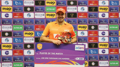 آئی ایل ٹی 20:گلف جائنٹس نے ایم آئی ایمریٹس کو 5 رنز سے شکست دے دی